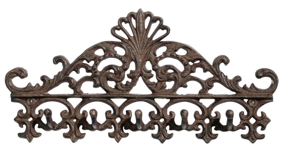 Hermosa perchero masiva de hierro, producido por las normas tradicionales. Como se ve en las fotos, una alta calidad y trabajo decorativo en estilo antiguo. Al consumir trabajo hecho a mano de los productos procesados tradicionalmente para obtener un aspecto antiguo. Esto tiene como consecuencia que una pátina o signos de la edad son deliberados. Así pues, cada objeto tiene ligeras variaciones. Las dimensiones son las siguientes: 34 x 17 x 4 cm (A x A x L). El peso es de 1 kg. La decoración es sólo para comparación de tamaño y no es parte de la oferta.